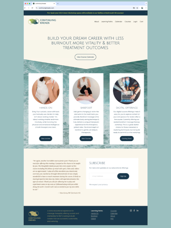 continuingkneads.comA niche educational experience for massage therapists, offering courses and mentorship for RMT's looking to build careers that are successful, sustainable, and nurturing.