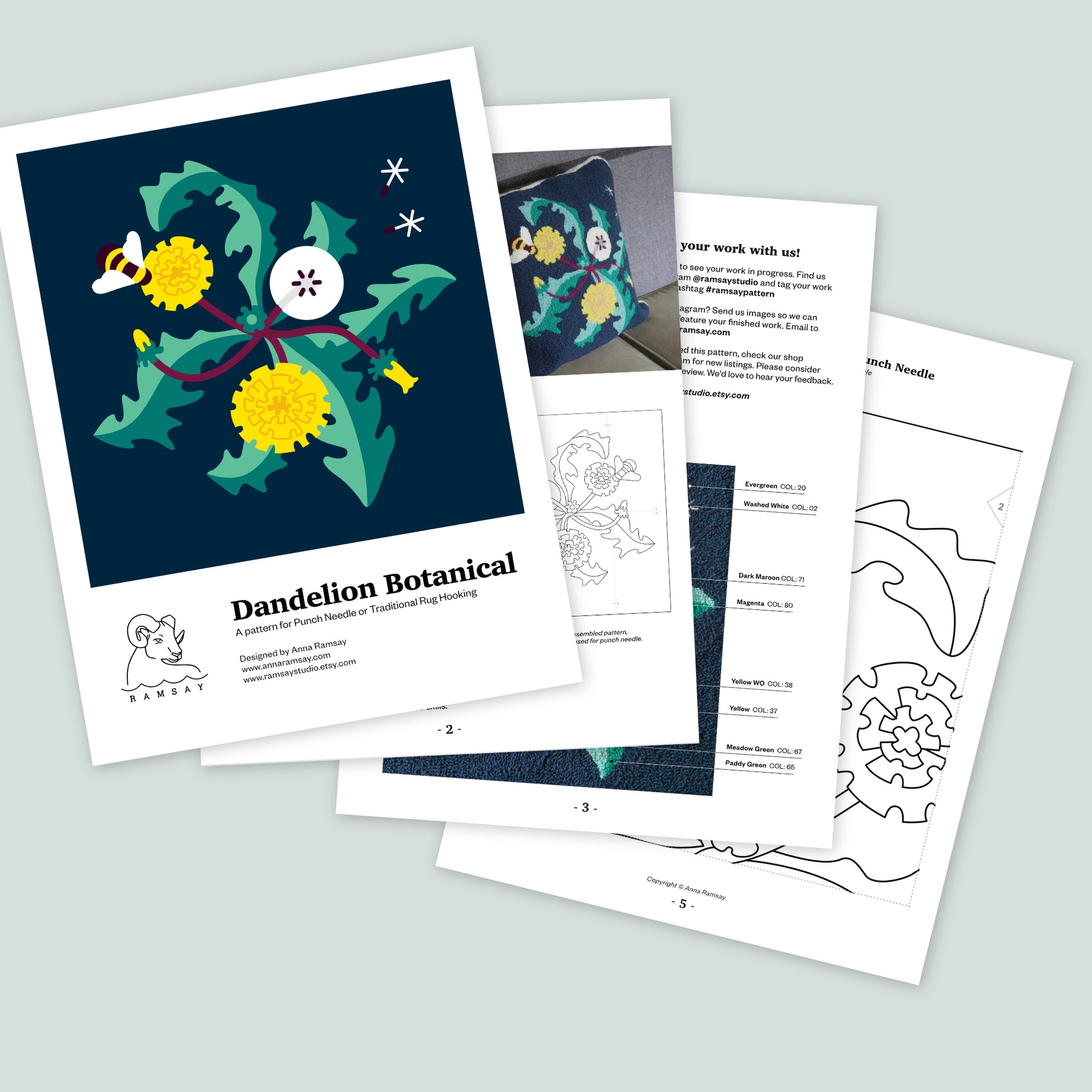 ✓ Scaleable copy shop files for both traditional rug hooking and punch needle which can be scaled to any size.